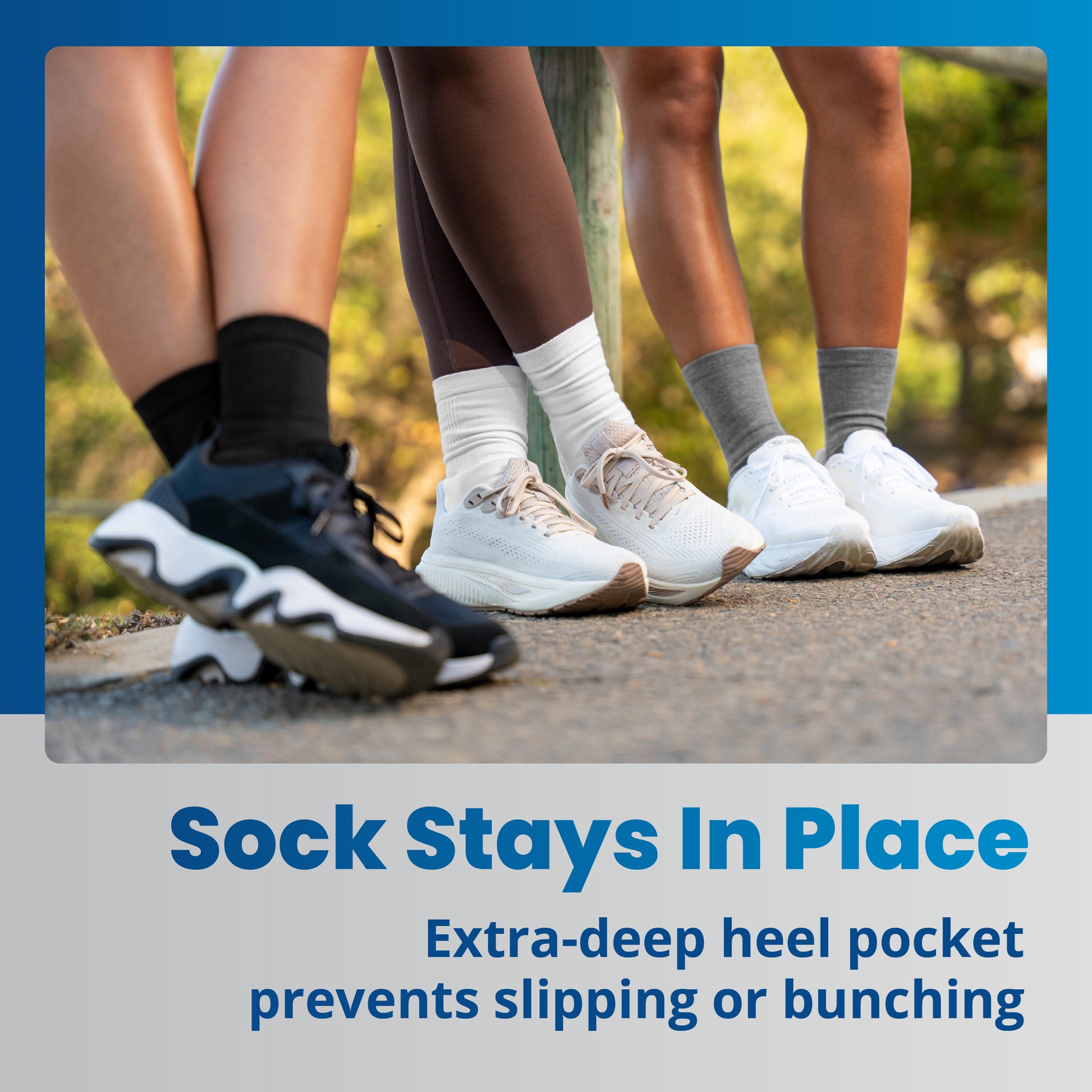 - Secure Fit: Designed with a deep heel pocket to ensure the socks remain securely in place, preventing slippage inside the shoe and protecting the Achilles from blisters.