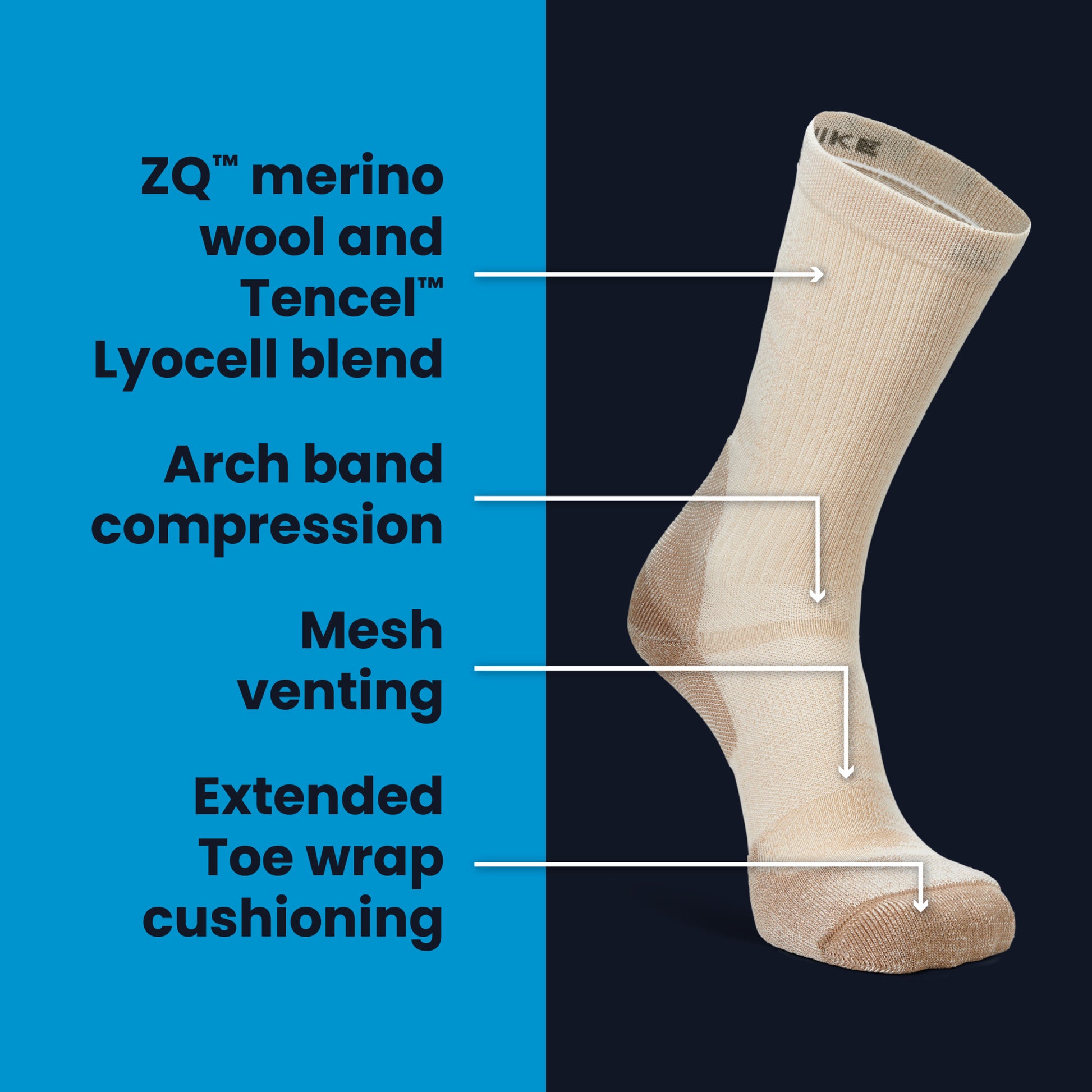 - Soft, Breathable Yarn Blend: Drynamix™, Merino wool, and Tencel™ Lyocell combine moisture control with plush, non-itchy softness for every step