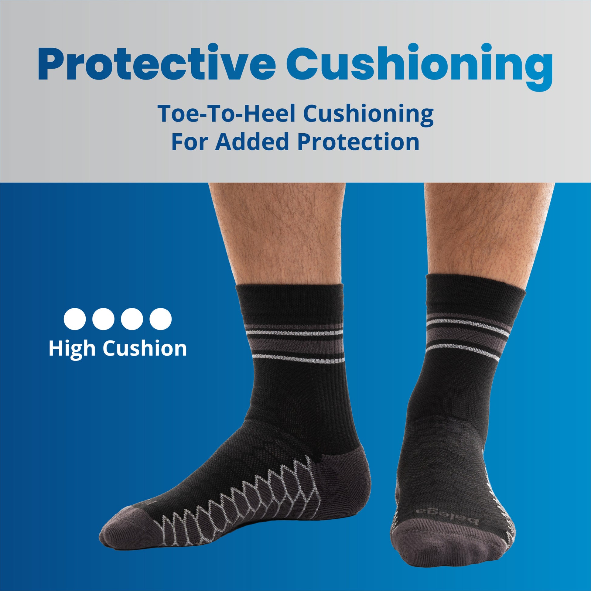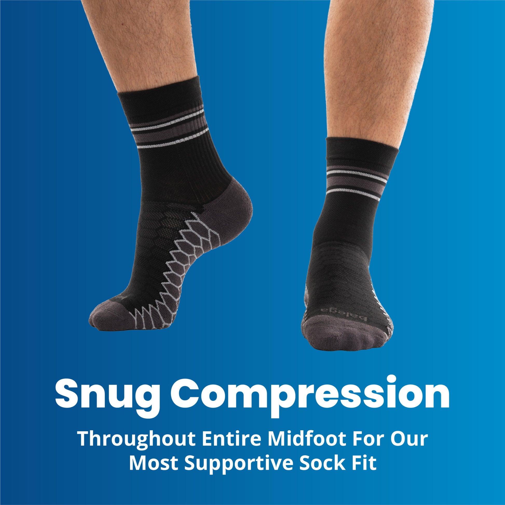 - Ensures perfect fit with compression sock arch support bands and extra-deep heel pocket.
