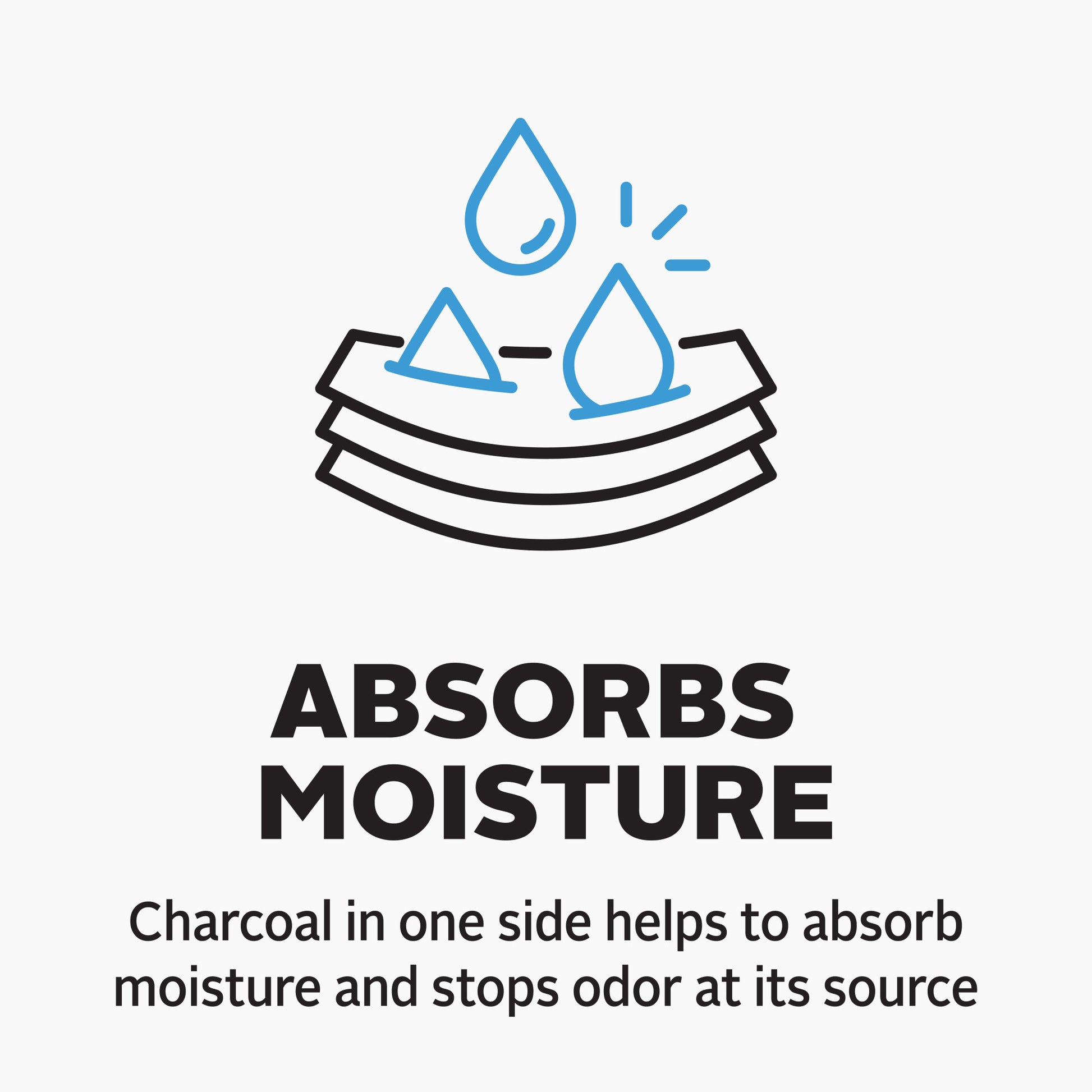 - Charcoal in one side absorbs moisture and stops odor at its source