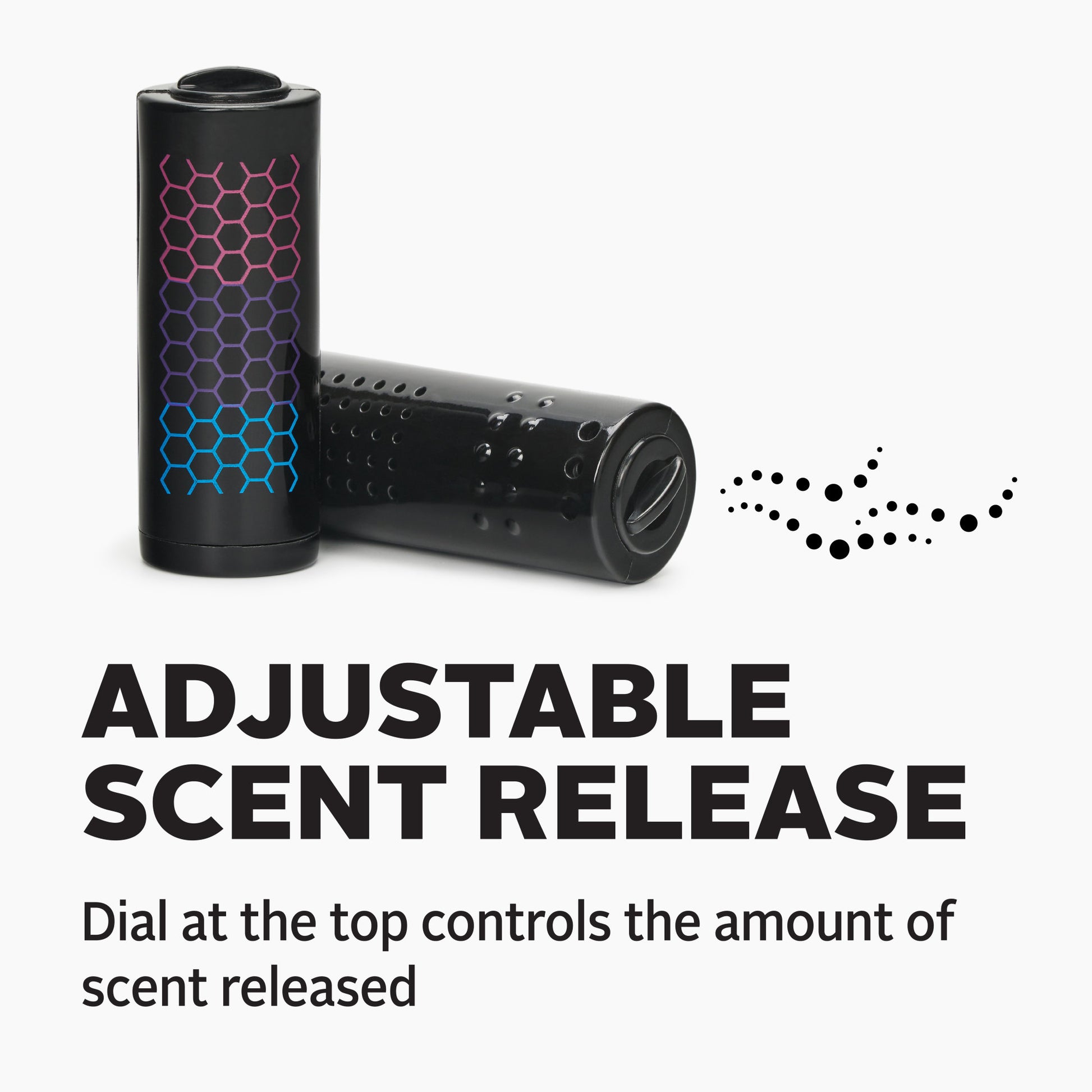 - Twist to activate and adjust dial at the top to control the amount of scent released